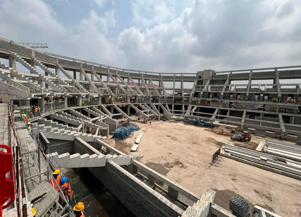 Complexe de 52 000 m2 pour 20 000 places assises, les travaux de l’Arena de Kinshasa étaient évalués à près de 103 millions $US. Or, au mois d’août 2024, selon la DGPPB, le Trésor a décaissé plus de 129 millions $US pour les travaux de cette enceinte qui n’évoluent guère, travailleurs congolais et turcs ayant vide le lieu. La situation étant clarifiée, les travaux vont donc reprendre.
