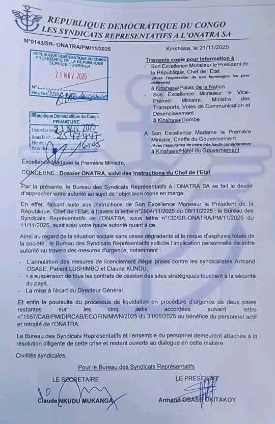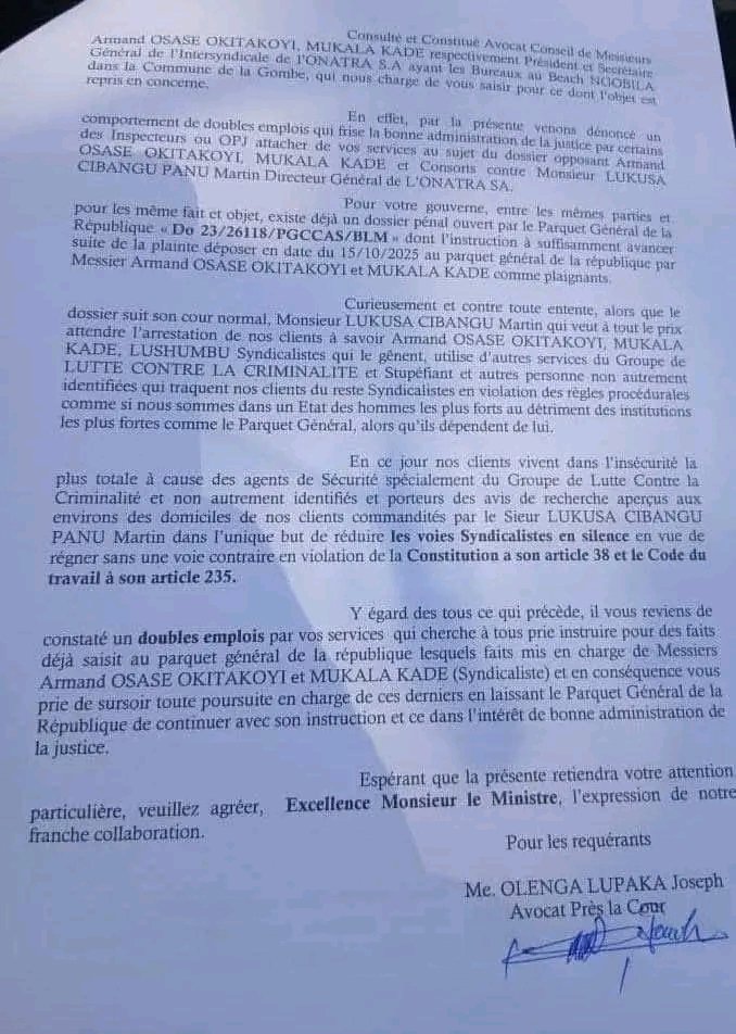 Il importe de rappeler qu’au moment de son arrestation, Armand Ossase n’était plus agent de l’ONATRA depuis plusieurs semaines. Selon des sources internes, il avait été écarté à la suite de tensions professionnelles et de divergences ouvertes avec ses collègues syndicalistes, qui avaient publiquement pris leurs distances avec lui.