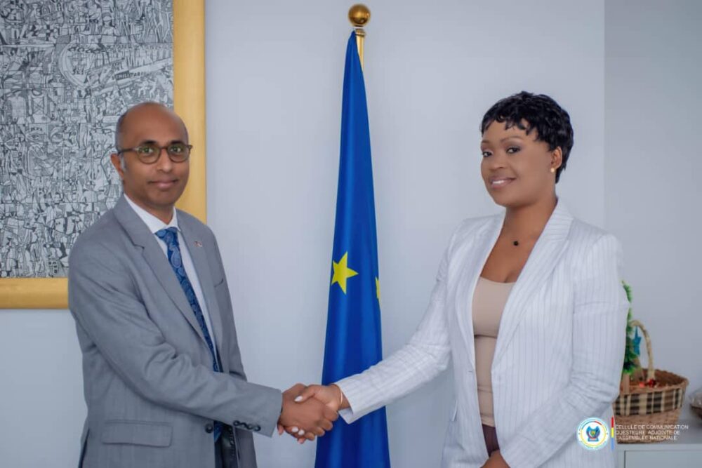 La députée nationale, Grâce Neema Paininye, questeure adjointe de l’Assemblée nationale a eu un entretien la semaine écoulée à Kinshasa, au siège de la Délégation de l’Union européenne, avec Fabrice Basile, Chargé d’affaires intérimaire de l’UE en République Démocratique du Congo. Cet entretien s’est déroulé en présence de la conseillère près cette représentation diplomatique, Mme Marie Makweri.