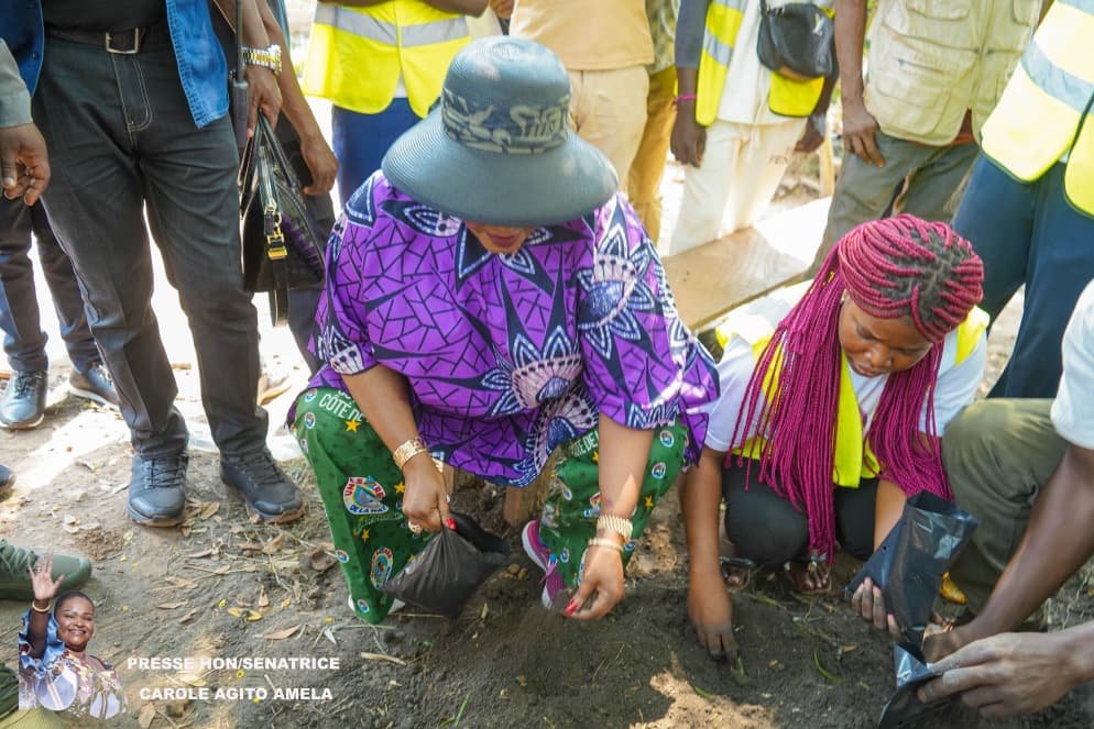 Sur le terrain, la sénatrice ne s’est pas limitée à une simple visite. Elle a personnellement pris part aux travaux agricoles en procédant au semis du cacao, du maïs et du bananier, un geste qui témoigne de son engagement concret en faveur du développement du secteur agricole.