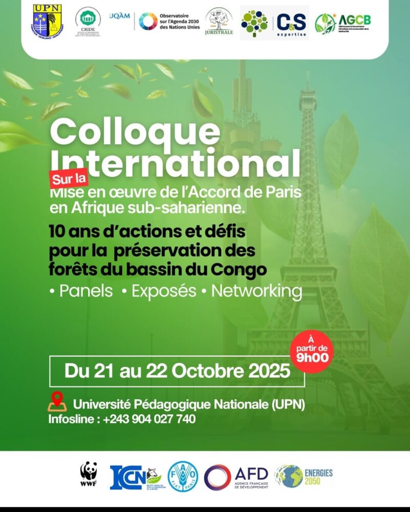 Invité parmi les principaux intervenants au Colloque International sur la Mise en œuvre de l’Accord de Paris en Afrique sub-saharienne qui s’est tenu à Kinshasa, à l’Université Pédagogique Nationale (UPN) du 21 au 22 octobre 2025, Claude Boyoo Itaka a consacré son intervention sur l’évaluation des mécanismes de coopération et d’harmonisation des politiques climatiques au niveau du bassin du Congo.