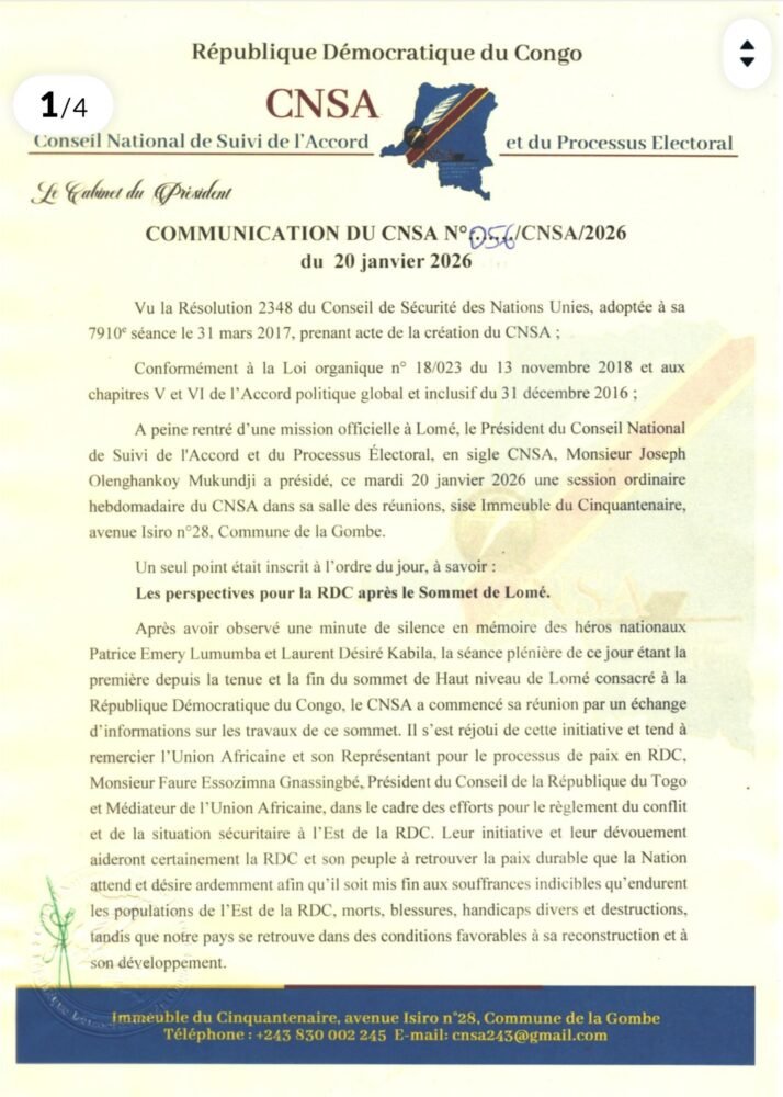 Le Conseil National de Suivi de l’Accord et du Processus Électoral (CNSA) tire la sonnette d’alarme face à la situation actuelle en République démocratique du Congo. Dans une déclaration officielle, l’institution insiste sur la nécessité d’un dialogue national inclusif et d’une cohésion nationale renforcée pour garantir une paix durable.