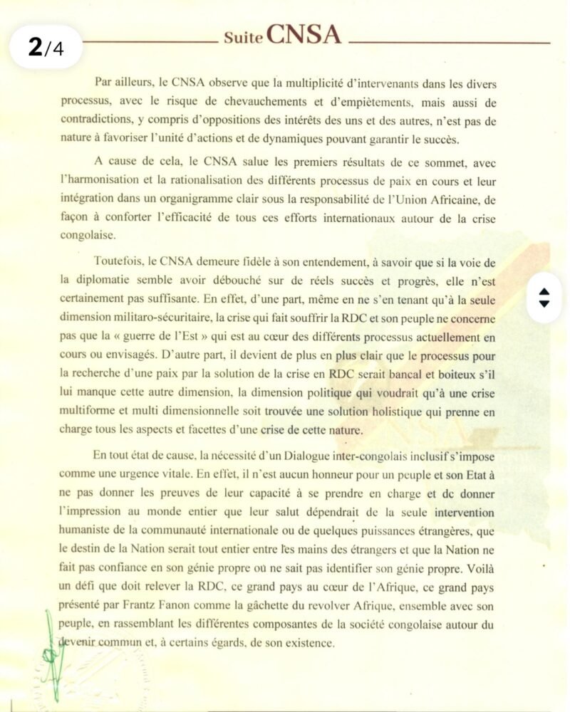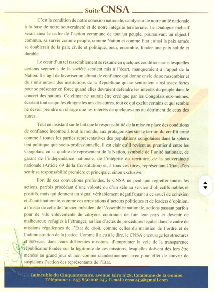Selon le CNSA, la crise que traverse la RDC dépasse la seule question sécuritaire à l’Est du pays. Elle est politique, sociale et économique, et nécessite donc une approche globale. L’institution souligne qu’un dialogue véritablement inclusif permettrait de réunir toutes les forces vives de la Nation autour d’un projet commun, essentiel pour renforcer la souveraineté et l’unité nationale.