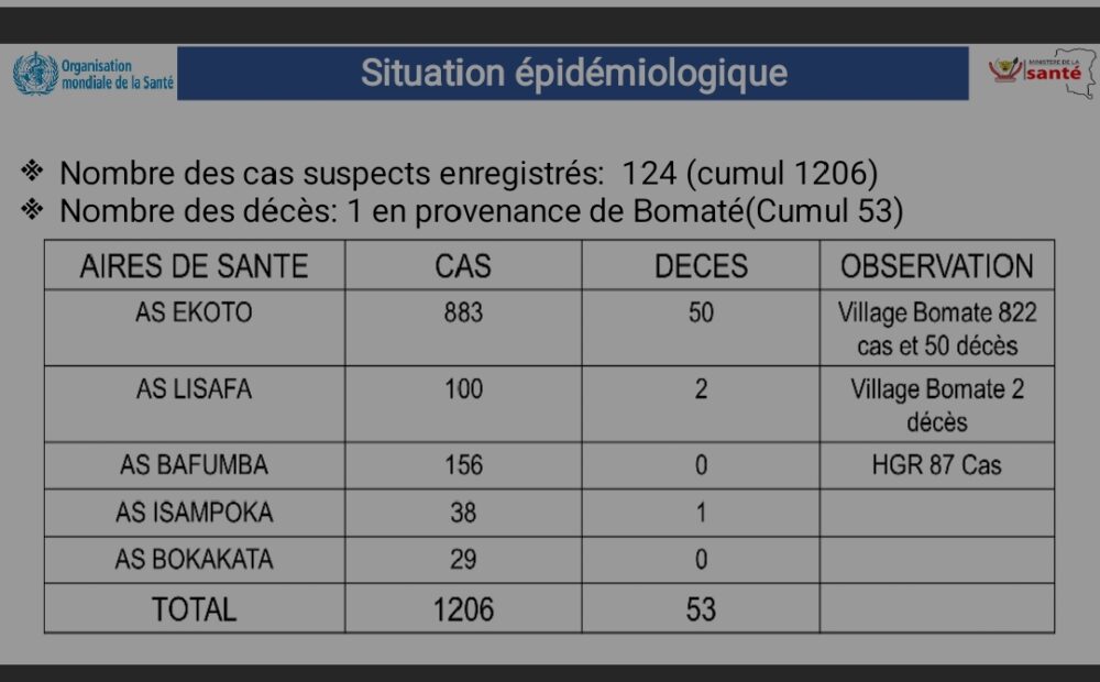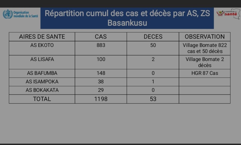 À ce jour, on dénombre plus de 36 cas de décès notifiés par la zone de santé de Basankusu sur la période allant du 3 au 9 février 2025 contre plus de 50 morts selon la population locale, ce dans cette localité qui ne compte qu’environ 5.000habitants .